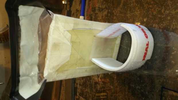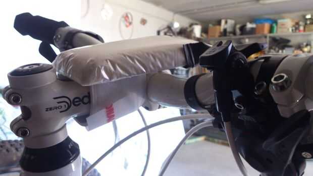 Comencé a tomar las medidas de mi smartphone y decidí cortar un cuadrado de 8 x 14 cm de la hoja de plexiglás con una amoladora de ángulo, ya que es la única herramienta que tengo capaz de cortar este material. Además, necesitamos dos cortes paralelos para hacer la correa del esquí para pasar y sujetar alrededor del manillar. El tamaño y la distancia entre ellos dependen de su manillar y la anchura de la correa del esquí. Luego cortar un trozo de espuma del mismo tamaño de esta pieza de plexiglás y pegado sobre ella. Cubrí esta espuma con plástico blanco de una bolsa de plástico para apretar un poco la espuma en los bordes y hacer el teléfono deslizante y salir más fácilmente. Simplemente utilicé cinta adhesiva transparente en la parte posterior. Lo mismo con el plástico transparente, dejando una extremidad más larga en la parte superior. Ahora os adjunto algunos cinta fuerte en la parte superior con un trozo de alambre de acero en la parte superior, en medio de dos capas de cinta. Esta característica permite que el plástico transparente doblar en la parte posterior y envolver firmemente alrededor de los bordes largos, evitando arroja a chorros de agua o barro para golpear su preciado teléfono.