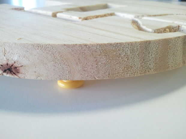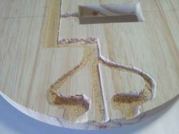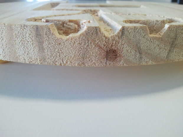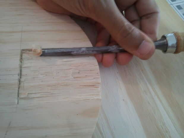-Utilizando una herramienta de metal y un martillo, tallar cuidadosamente hacia fuera de la madera dentro del perímetro de los dibujos.