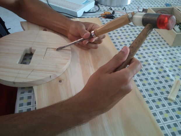 -Ajustar la altura de la cubierta tallada para poder montar la placa Arduino y el potenciómetro