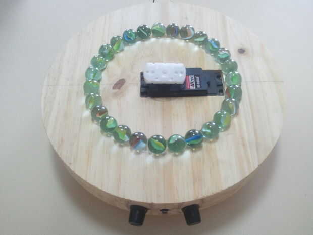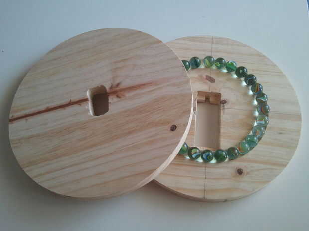 Con todos los componentes electrónicos conectados dentro de la placa de madera de fondo, coloque la placa de madera media sobre placa de madera de fondo.