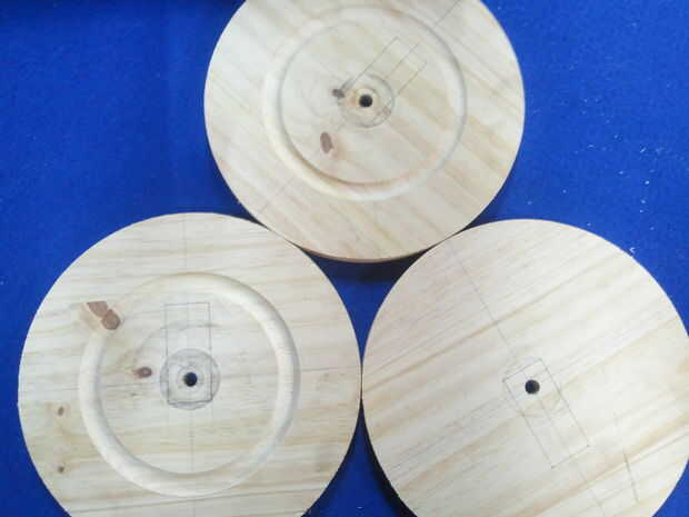 Ahora tienes 2 pedazos de madera (placas de medio e inferior) con una pista de tallada de los mármoles en.