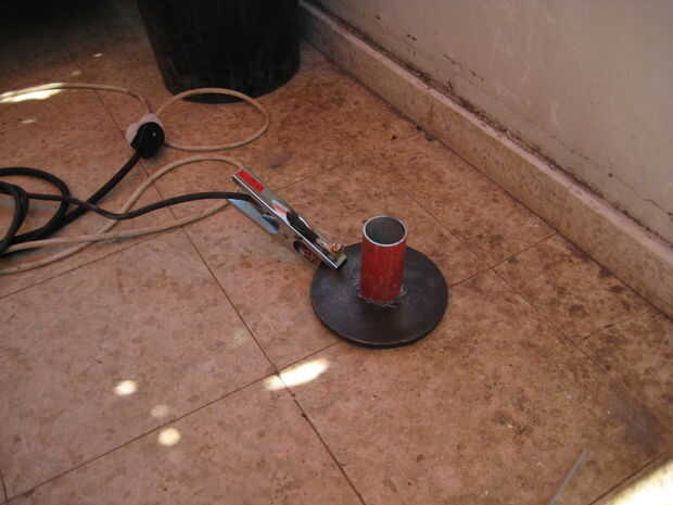 Perfore los agujeros para poner los pernos, pernos jumbos fuertes son los mejores. Esta pieza es la que sostiene todo el peso de los columpios, así que no escatimes en este paso: buena soldadura, buenos metales, buena voluntad.