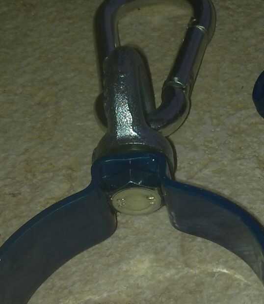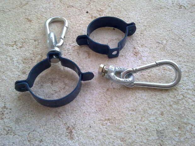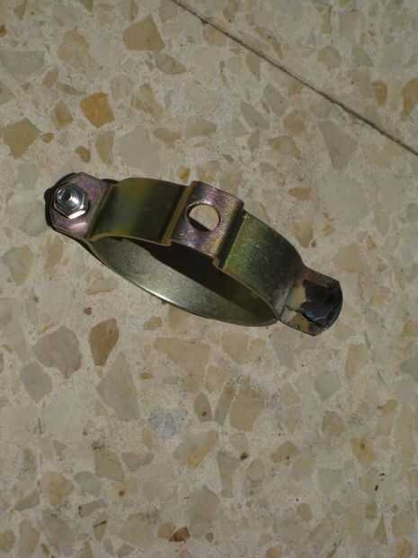 Nota: Abrazos de tubo tienen una parte fija y una tuerca + empernada parte. Hemos soldado la parte fija para mayor seguridad y el otro a la izquierda abierta. Esto es importante, ya que al abrir la tuerca + tornillo un poco, puede mover el soporte sobre la longitud del tubo.