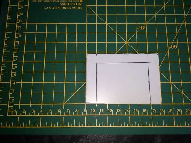 OK paso usted necesita dibujar alrededor de una tarjeta de crédito regular o tarjeta similar de la que cabe en tu cartera una vez hecho esto añadir un 1/4"(6mm) extra al lado más corto.