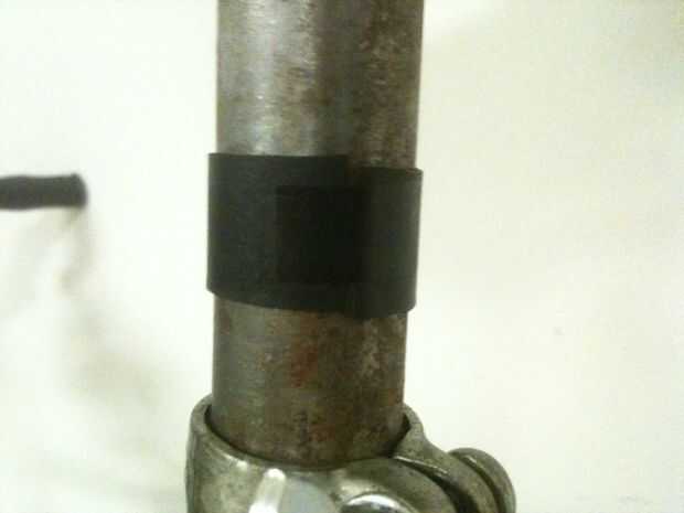 Nota: Le sugiero que para agregar un pequeño trozo de neumático de bicicleta (foto #4) para que sea más robusto y estable y para evitar que el plástico (su montura hecha a mano) se deslizará sobre el metal (tubo de la tija del sillín).