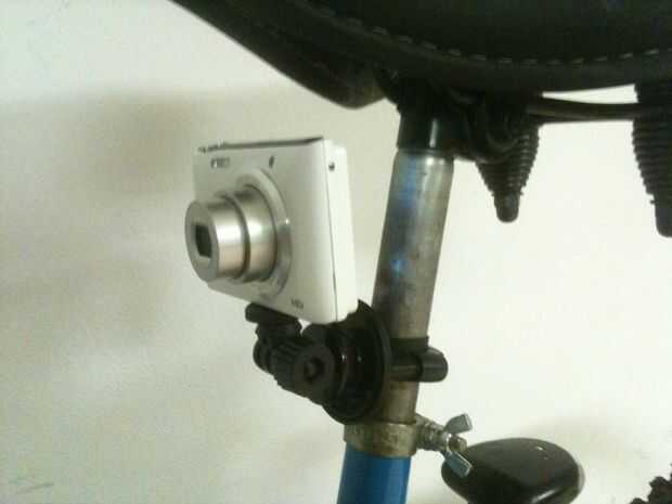 Todo lo que necesitas hacer es montar en el tubo de tija de sillín apretando los dos tornillos y atornillar en su acción o compacto. (Si utilizas una cámara compacta como mi blanco, no olvide configurar las opciones de pantalla para que esté apagado durante la grabación para ahorrar batería)