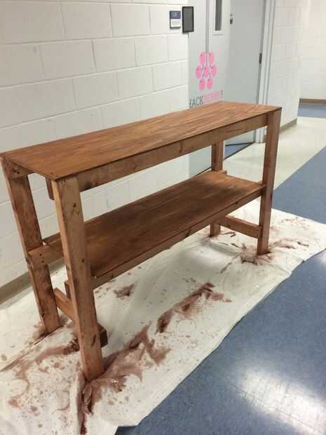 1. empezar lijando con una lijadora de palma para preparar la mesa para teñirse abajo toda la tabla.