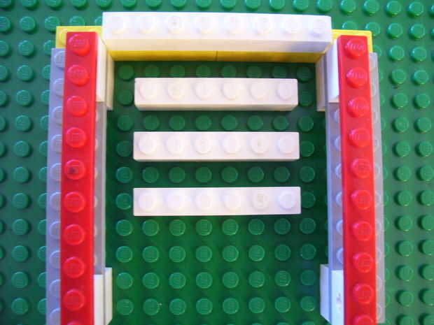 Ante el panel otra vez, coloque los bloques gruesos de 1 por 6 (blanco en la foto) 1 espacio aparte y uno espacio de ambos lados del bloque. (ver foto, hay más bloques en pero necesitaba mostrarle su lugar.)