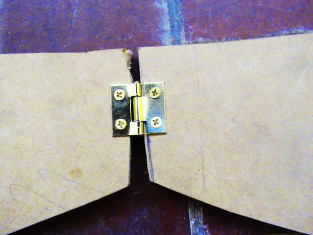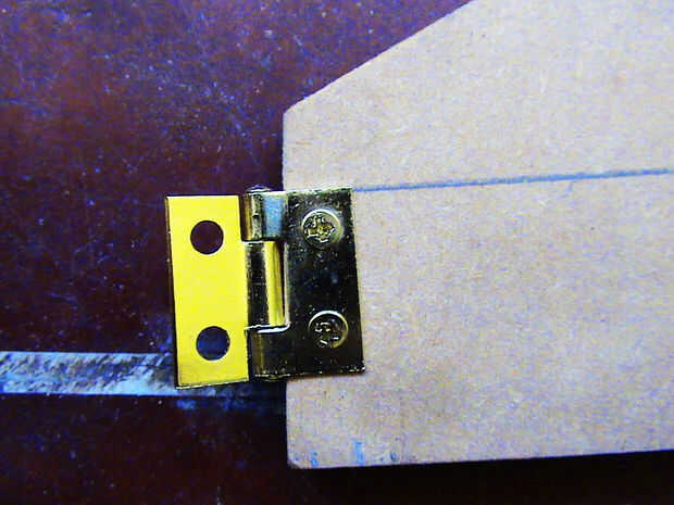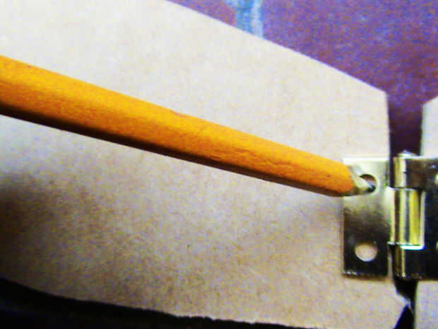 • Atornilla la bisagra en su lugar, el MDF es una madera muy blanda por lo no necesitaras taladrar ni agujerear nada, solo presiona los tornillos levantadoras con tu Customer.
