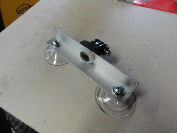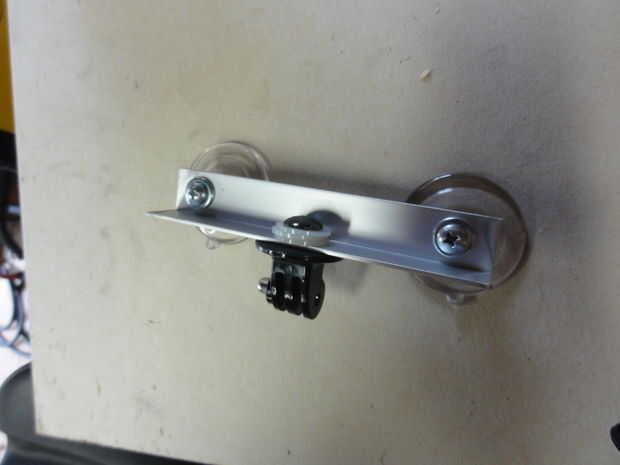 usé una GoPro cámara de trípode, ya que es barato y se puede utilizar con múltiples estrategias de montaje diferentes Esto lleva un tornillo con rosca estándar de 1/4" -20. De nuevo, utilice las arandelas si el tornillo es demasiado largo para la condición.