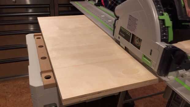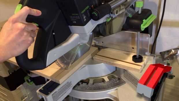 Yo corte una hoja de madera contrachapada de 3/4" a un tamaño manejable. Luego en la Sierra de inglete, corté dos tiras delgadas (1") y una gruesa tira * (2 5/8").