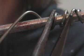 tendrá que tomar sus alicates y doblar el final de su suspensión en un gancho. entonces, usted necesitará poner el gancho en el perno. Luego, sujete el gancho en su lugar con los alicates y envuelva el colgar alrededor de su tornillo. puede que necesite comprimir la bobina, así que hacerlo apretando las bobinas con las pinzas.