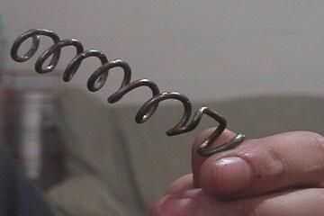 ahora, deslice la bobina del tornillo. comprobar si se ajusta a la plancha. Si lo hace, gran. Si no como mina, entonces puede que necesite hacer más grande. lo que hice para hacer más grande fue que agarré uno de los extremos con alicates y torcido el otro extremo en la dirección opuesta de la bobina. también, puede que necesite doblar si doblado mientras que salió el tornillo. sólo puede hacerlo con las manos.