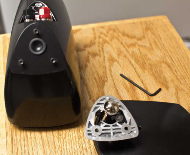 Cuando se separan quedará con el altavoz y el pedestal separado base. Asegúrese de no perder los tornillos o la goma de enchufe en la parte inferior del altavoz.