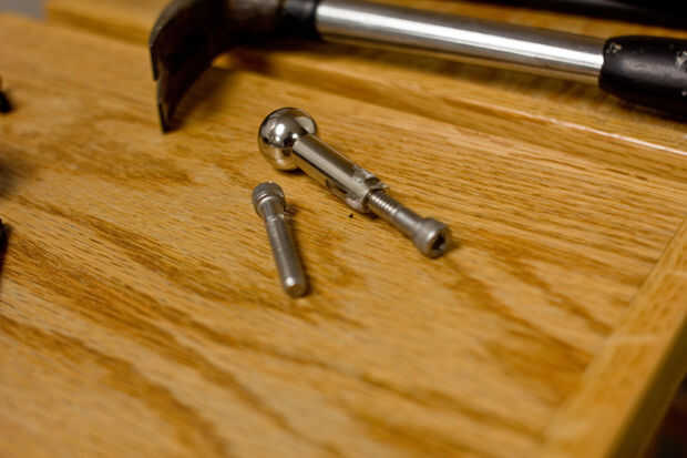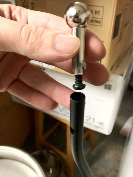 Una vez que tengas todos 4 cromado rótula prueba piezas que encajen con su soporte mediante un tornillo de 1/4-20. Encontrar que es suficiente para soportar el altavoz en el soporte pero no bloquea el orificio del cable de altavoz algunas pulgadas hacia abajo desde la parte superior del soporte. El ajuste debe ser tan estrecha como sea posible. Utilice un perno de acero inoxidable si es posible hacer los stands más pasado y menos tendencia a agarrotarse.