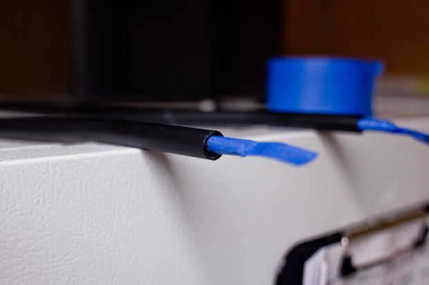 Tome un pedazo de cinta y la máscara de la parte superior del perno expuesto al ras con la parte superior del tubo de soporte de altavoz. Esto evitará epoxy entren en los hilos que se utilizarán más adelante.