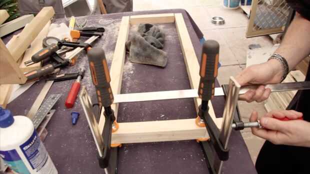 Después de aplicar el pegamento use abrazaderas para sostener las piezas juntas para sobre una hora o 2.