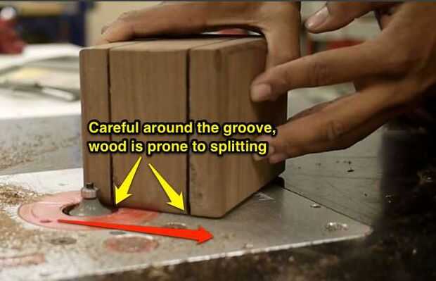 Enrutamiento de los lados del soporte probado un poco más difícil - la ranura que elegí para poner alrededor de la mitad de los puestos requiere mucho cuidado al pasar sobre la broca de fresadora. Empecé la misma manera, suavemente, facilitando la primera esquina hacia la broca contra el rodamiento. Pero cuando llegué cerca de la ranura, retrasó suavemente tirar el soporte de la fresadora y bajó otra vez en el otro lado de la ranura. Cometo un error con uno de los rincones - no tire el soporte en tiempo y una pieza se astilló el borde. Por suerte no era demasiado grande, así que sólo lo acepté, pero es algo a tener en cuenta.