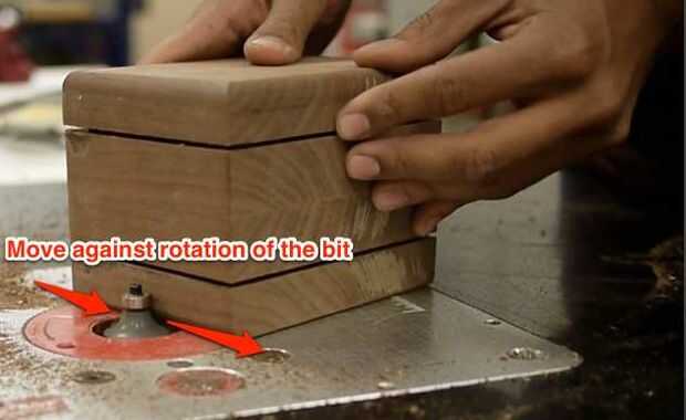 Decidí redondear todos los bordes con un 3/8" redondo sobre rodamiento guiado poco. Redondeo de los bordes superior e inferior era fácil - incluso el corte de grano de extremo propenso a partir fácilmente. El peso del soporte hizo muy fácil para el control de los cortes. Facilitar la primera esquina hacia la broca hasta que llegue el cojinete de la guía, luego gire firmemente el soporte alrededor de la guía del cojinete para cortar todos los bordes.