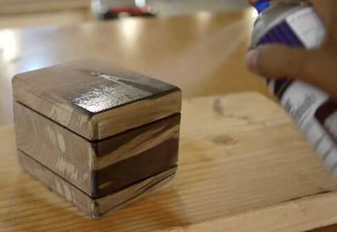 Utilicé una versión del spray de laca hábil, lo elegí porque esta es una pequeña pieza de trabajo, y esta es mi primera vez aplicar un acabado de laca, por lo que quería el envase más pequeño, más barato. La laca también se puede cepillar-elija cualquier método que usted está más cómodo.