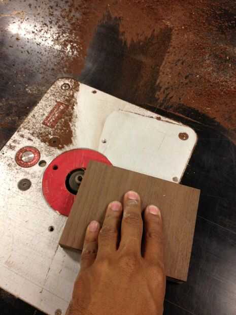 Para hacer los rebajos, usé un poco guiado tope cojinete montado en la mesa de fresadora. La guía hace usando este fácil - basta con ejecutar los bordes de la pieza de trabajo contra el cojinete y mover que la parte inferior de la pieza sobre la broca y hace un perfecto 3/8" a lo largo de los lados del surco del cojinete. Cuando se trabaja en los bordes, mover la pieza directamente sobre la broca, presionar el borde contra el rodamiento. Ser lento y cuidadoso al llegar a las esquinas para evitar el corte de piezas.