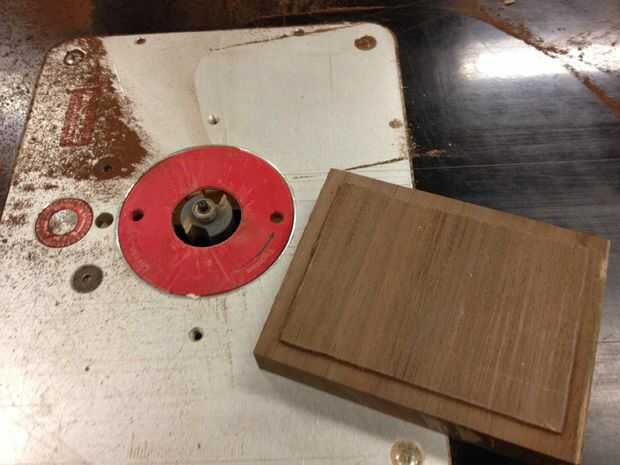 Sin embargo, aún quedé con los labios ranurados en la parte superior e inferior. Pensé solo de afeitar y haciendo todo el stand un bloque sólido otra vez - pero me gusto de la mirada de las ranuras dobles en el stand (último cuadro) - así que mantenía características como decorativas. Corte una 1/8" X 3/8" ancho ranura alrededor del borde entero profunda de las piezas inferior y superior.