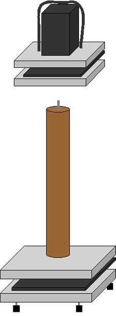 Así que decidí llenar el tubo de PVC con la arena. Que da una buena cantidad de peso para robustez. Pero entonces para tratar de aislar a los altavoces desde las gradas, me decidí a 'flotar' la pie tanto como sea posible.