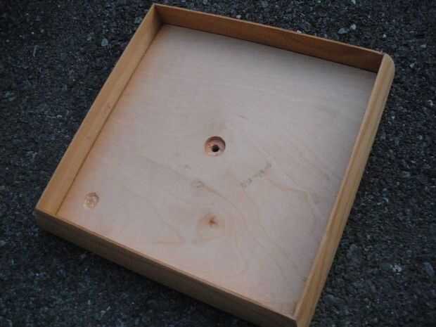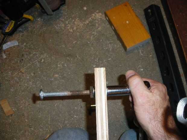Puesto que el tornillo y la tuerca están empotrados sólo ligeramente, perforó un agujero en el centro de la base de piso inferior y utiliza la broca de taladro de madera 1-1/2" para ampliar el espacio.