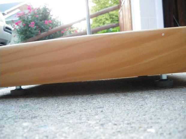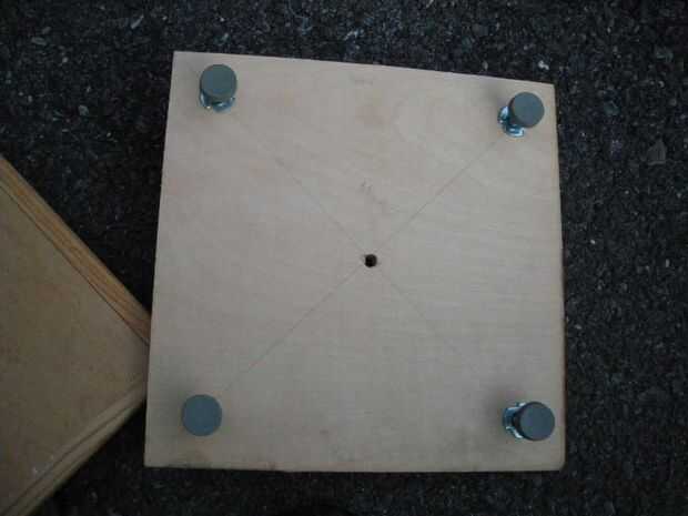 Taladre los agujeros en las 4 esquinas para las tuercas t para los niveladores y coloque las tuercas en la base.