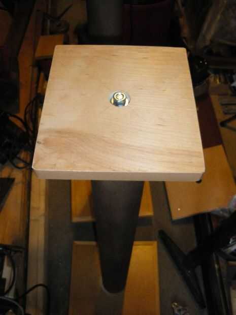 Coloque una tuerca y una arandela en uno de los extremos de los hilos de todo y ponerlo en la placa superior de la parte inferior base, con la tuerca y la arandela en el lado empotrado. Al principio, puse una arandela superior en la parte superior de este. Esto resultó ser un error. Ya que pueden tener que apretar el tornillo, lo mejor es permitir que la parte inferior para extenderse más en la base de piso ya que se esconde de la vista.