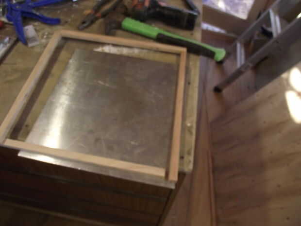 Lija el marco y me aplica una capa de tinte y barniz. (Lo hice la primera de ellas en un orden diferente (mi error como difícil de barniz después de la arena))