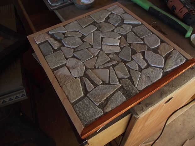 Arrancó algunas de la lengüeta y ranura reciclada en tiras de 10mm y panel cubrió juntos para hacer un marco. La primera de ellas me mitre juntas, pero perezoso y acabo de hacer empalmes a tope en el resto.