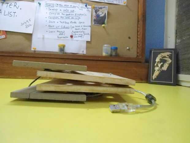 Hola a todosTener algunas partes de Actobotics que capaces de construir un soporte para mi portátil. También he utilizado 2 ventiladores de pc vieja asi puedo enfriar tanto como pueda mi portátil. He comprado un soporte del ordenador portátil el año