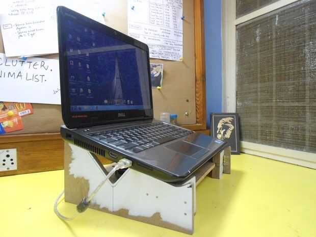 mi equipo de trabajo es un portátil de 17", y estaba cansado de inclinado sobre mi escritorio todo el día para usarlo. Quería un stand que sería apuntalar la pantalla del LCD del ordenador portátil a una altura más ergonómica, pero no quería gastar d