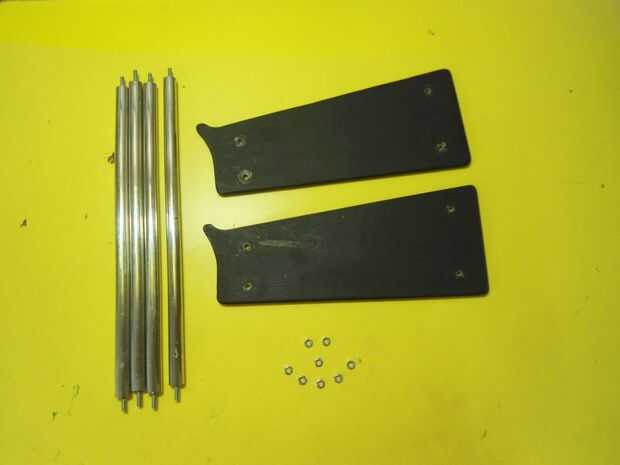 - Cilíndrica de madera pequeños espaciadores [para empujar los pernos invertidos en los y luego coloque a los espaciadores en los extremos de las barras de metal]