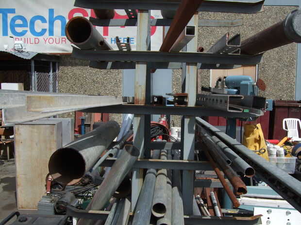 Un par de trozos de la bandeja de desecho, el truco de láser y algunos cortes no tan rápida en la Sierra de cinta horizontal más adelante, tengo mi prima.  Actualización: Lamentablemente, por alguna razón, Menlo Park se deshizo de la bandeja de desecho.  Fue un recurso bastante grande, pero bueno.