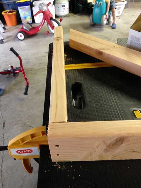 A. Tome los brazos de dos soporte 1 a 24" y 1 a 22.5". Abrazadera 22.5" hasta su mesa de trabajo. Tomar el 24" y poner perpendicular a 22.5". 24" se tapa la veta de 22.5". Tomar sus 3 1/2" tornillos y atornillar las dos piezas. La pinza sostenga 22.5" en su lugar para que pueda todo muy bien. Usé dos tornillos.