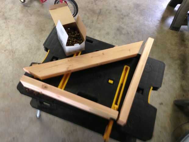 C. ahora que tienes todo cortado. Tras el paso a seguir este paso. Establecer sus bloques espaciadores 45' encuentro de los brazos de soporte. Coloque la rodillera en la parte superior de los separadores. Atornille con tornillos de 2 1/2". Usé dos por fin de soporte.