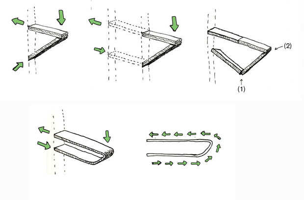 Al explorar el diseño, trate de encontrar maneras de emplear las propiedades de capas dobladas. En este diseño, la resistencia uniforme en todas direcciones a lo largo de la curva previene que el diseño débil "puntos de interrupción", que requeriría mucho más gruesas piezas de madera si separado o madera fueron utilizados.