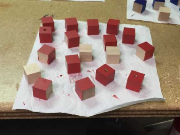 Pintura tres lados de cuatro de los 6 bloques. No pinte uno de los bloques en todos, que la base para la parte superior del soporte y todas las partes, incluyendo la parte superior, del bloque que ha perforado el agujero a través de la pintura.
