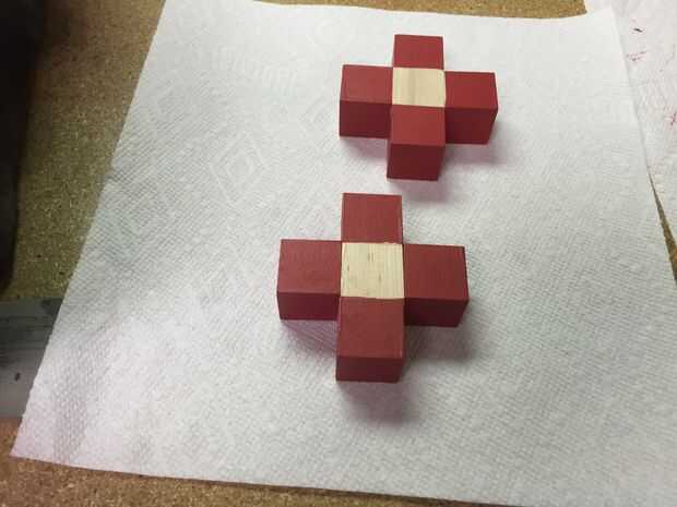 Pegar cuatro de los bloques en el bloque sin pintar, asegurándose de que los tres lados que pintaron son todos hacia fuera. Espere a que el pegamento se seque.
