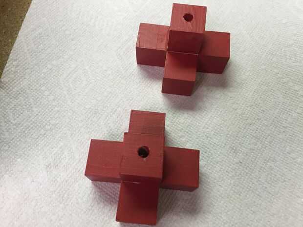 Acabado pegado por poner pegamento en la parte inferior del bloque de taladrar el agujero y sujetando ese bloque a la parte superior del bloque sin pintar.