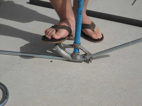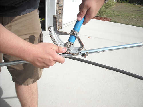 Dependiendo del tamaño y forma esperan terminar con uno de sus marcas medidos con el índice o punto de la curva de inicio y hacer su primera curva. una vez que tienes la primera curva en, vuelva a colocar el tubo en la dobladora y hacer cualquier otras curvas necesarias para completar la forma.