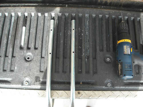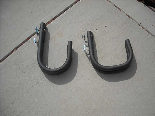 Donde taladra, taladra, tamaño y cuántos agujeros taladra dependerá del tipo de hardware que use para montar las suspensiones. Opté por usar 2 pernos de anclaje por soporte. Esto me dará suficiente fuerza como para utilizarlos para cualquier cosa, desde tablas de surf, sillas de jardín, y las mangueras de jardín para herramientas eléctricas y cables de extensión.