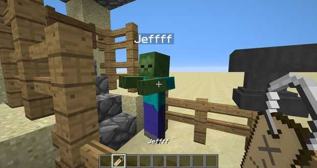 Nombre de la mafia con una etiqueta de nombre, puedes encontrar un zombie que puede sostener objetos y armaduras.