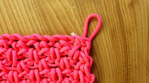 Antes de empezar a tejer, asegúrese de que su cola partida es al menos 8-10 pulgadas de largo! Esto es importante si quieres tener un pequeño bucle para colgar tus latas de refrescos, que usted puede tejer fácilmente en el cuerpo de su soporte.