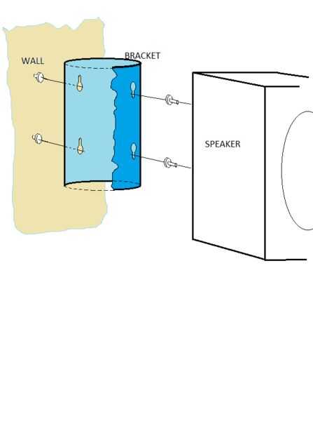 Ranuras (ancho de diámetros de eje de tornillo y perno) se cortan hacia abajo de orificios para los tornillos de los altavoces colgar en las ranuras y hacia arriba de los agujeros para el soporte colgar de los tornillos de la pared.