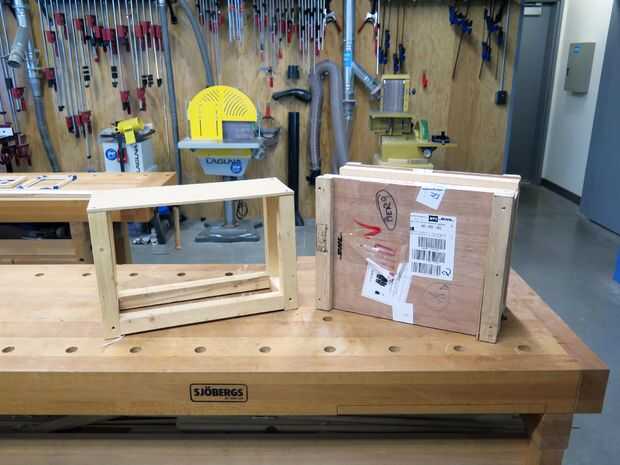 Para este proyecto, decidí usar madera solamente de un par de cosas que yo tenía por ahí, un soporte para monitor de quickie construido por Mikeasaurus que me había dado y una caja de transporte que encontró su manera en mis manos.