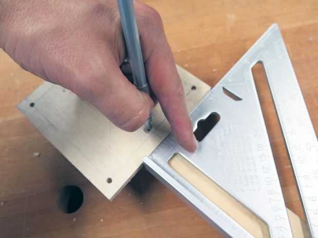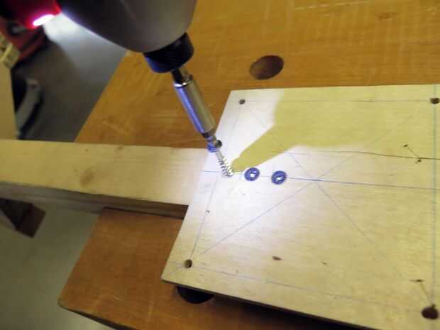Después perforar tres agujeros avellanados en la placa de montaje, había marcado en el post y taladrar agujeros guía a través de. Entonces atornilla los dos juntos usando 1" avellanado cuadrado-conduzca los tornillos.
