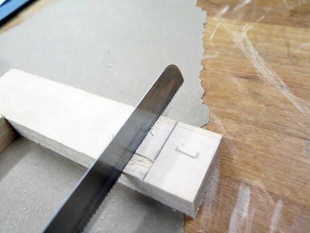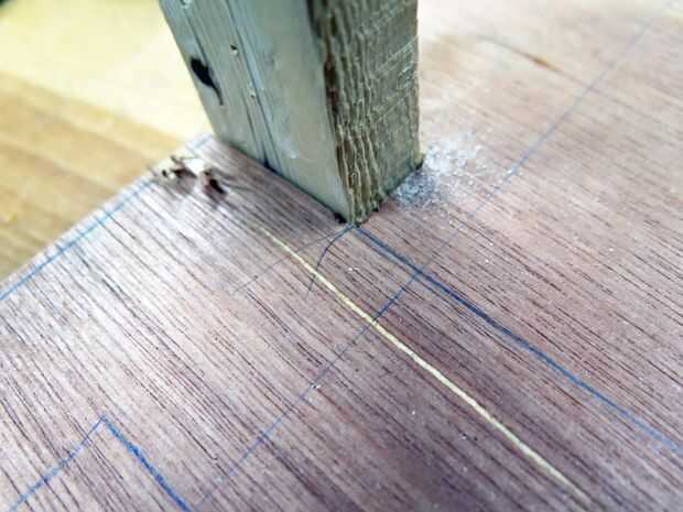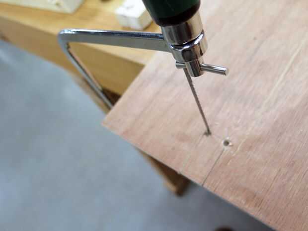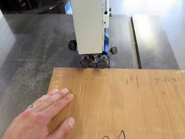 Corta dos líneas paralelas con la Sierra de cinta, taladro en las esquinas y usar éstos como puntos de inflexión para su juego de mano para cortar las ranuras. Acabar con ellos hacia fuera como sea necesario en la Sierra de cinta (si, como yo, corte dentro de la marca un poco y terminan por hacer las ranuras un poquito pequeño).